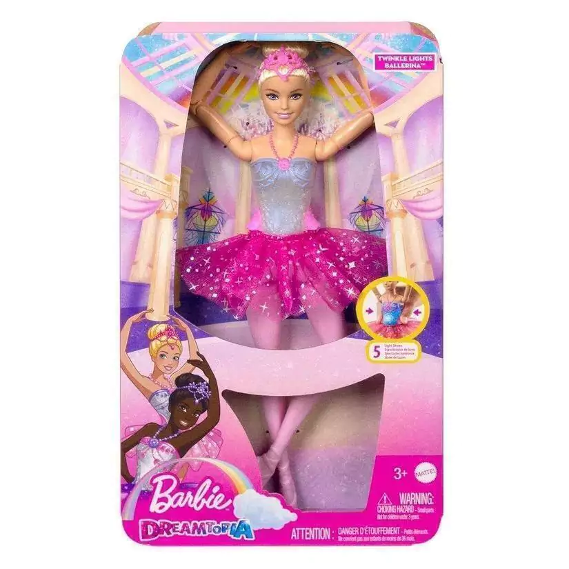Barbie Fantasia Bailarina Luzes Brilhantes Rosa - Mattel Veja as luzes da Barbie® acenderem enquanto ela "dança"! Estas lindas bailarinas contam com uma função de iluminação mágica que dá um toque único à brincadeira. Seus corpos articulados em roupas brilhantes adicionam mais emoção às histórias. Excelentes presentes para quem ama contos de fadas também! Vendidas separadamente, sujeitas a disponibilidade. As bonecas não ficam em pé sozinhas. As cores e as decorações podem variar.