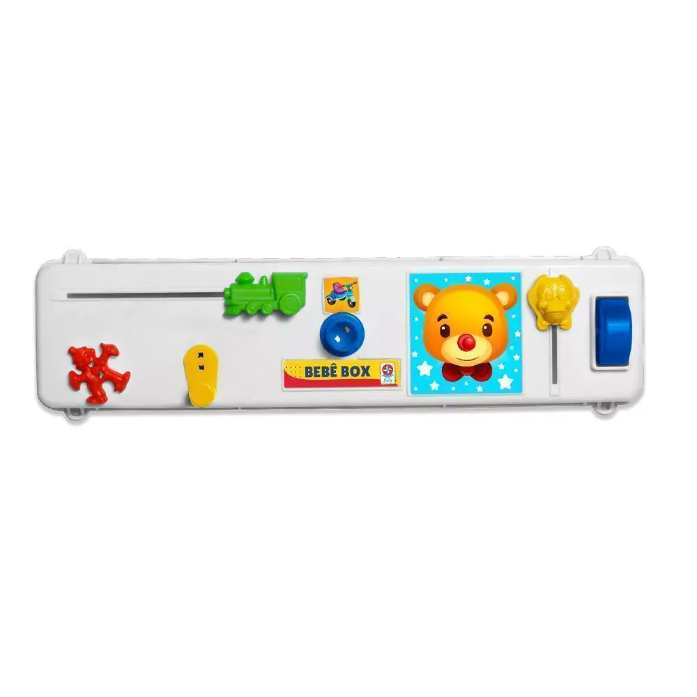 Um centro de atividades para o bebê se divertir no berço ou em qualquer outro lugar. O Bebê Box vem com 6 atividades para entreter: palhacinho que gira