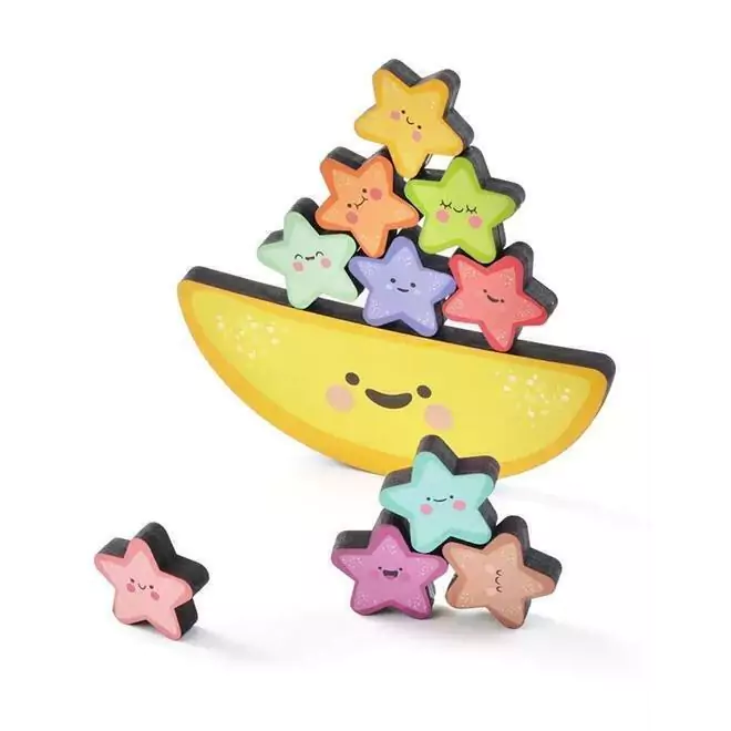 Chegou o Brinquedos Educativo Equilibrando Estrelinhas da Babebi. <br>Uma encantadora lua equilibrista e simpáticas estrelinhas que auxiliam no desenvolvimento da coordenação motora, raciocínio estratégico e concentração dos pequenos de maneira lúdica e criativa. <br>Feito de madeira reflorestada. <br>Para os ¿menorzinhos¿ inicie apenas com as estrelinhas sobre uma superfície plana e aos poucos progrida sobre a lua. <br>Contém: 1 lua e 10 estrelas coloridas. <br>Indicado para crianças a partir de 2 anos. <br>Recomenda-se a interação de um adulto.