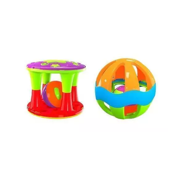 Conjunto com dois chocalhos.Este brinquedo irá ajudar no desenvolvimento da criança, além, de entretê-lo durante a brincadeira com som do chocalho suave.