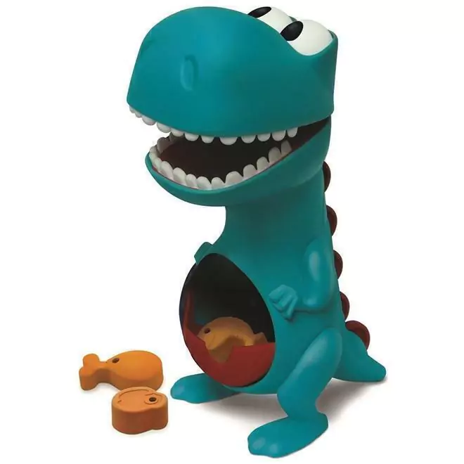 O Dino Papa Tudo é muito divertido! Ele abre o bocão e engole o franguinho, o peixe e a carne direitinho! Depois é só abrir sua barriguinha para começar tudo de novo. Ele abre a boca que faz barulho de "crec crec" como se estivesse mastigando. Esse amiguinho tem diversas atividades que estimulam as habilidades cognitivas das crianças, como a compreensão de causa e efeito.