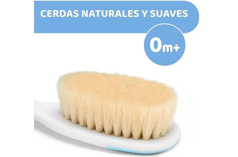 As escovas e pentes da chico possuem cerdas naturais e macias e pontas arredondadas no pente, perfeitas para o delicado couro cabeludo do bebê, ambos têm cabos largos, fáceis de segurar e também são anti-deslizantes.