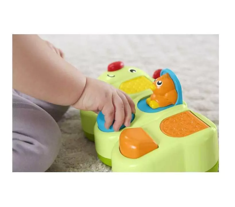 Surpresa! A Lagarta Surpresa Fisher-Price® é repleta de diversão surpreendente para o seu bebê descobrir. Conforme os pequenos apertam, giram e deslizam os botões na frente de cada porta, os amiguinhos animais vão aparecer para um olá rápido! Para uma surpresa extra, empurre o nariz da lagarta para ouvir um rangido divertido. É ótimo para exercitar a coordenação motora fina e se divertir de montão! Onde o desenvolvimento encontra a brincadeira(TM). Sensorial: As carinhas amigáveis dos bichinhos, as cores vivas e os sons divertidos envolvem e estimulam os sent